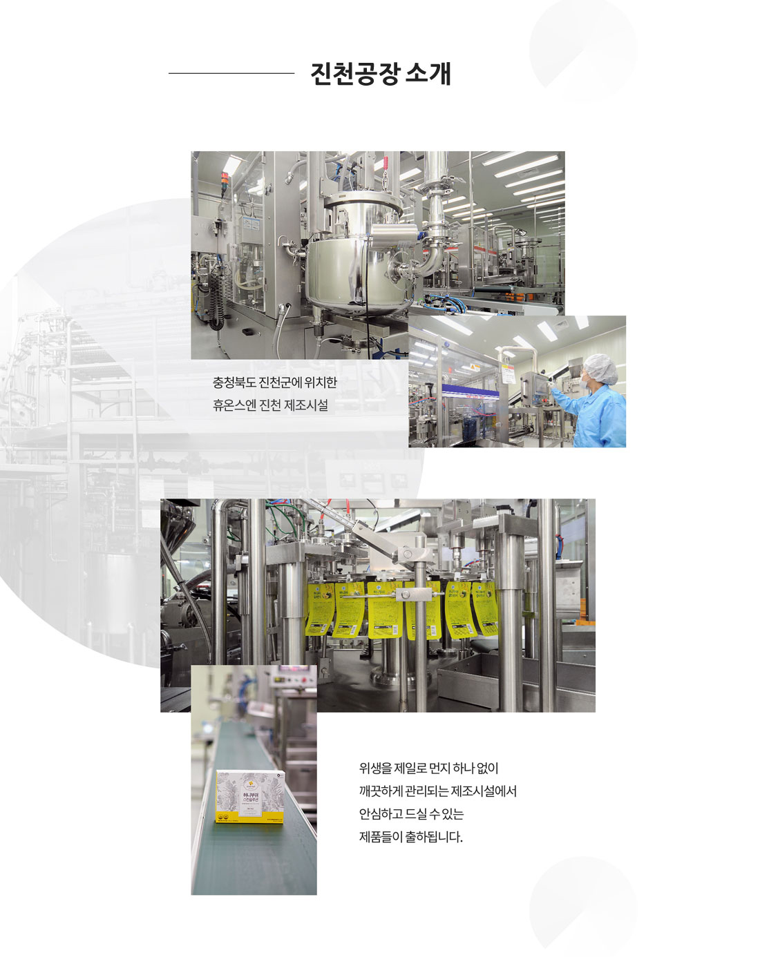 | 보유기기 | 혼합 및 추출탱크, 당침기, 동결건조기, 스틱파우치 (10ml ~20ml), 사면파우치 (50ml ~ 70ml), 정제, 캡슐, 제환 |